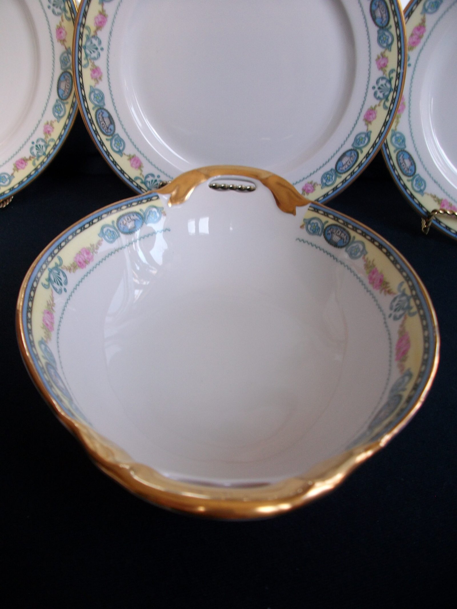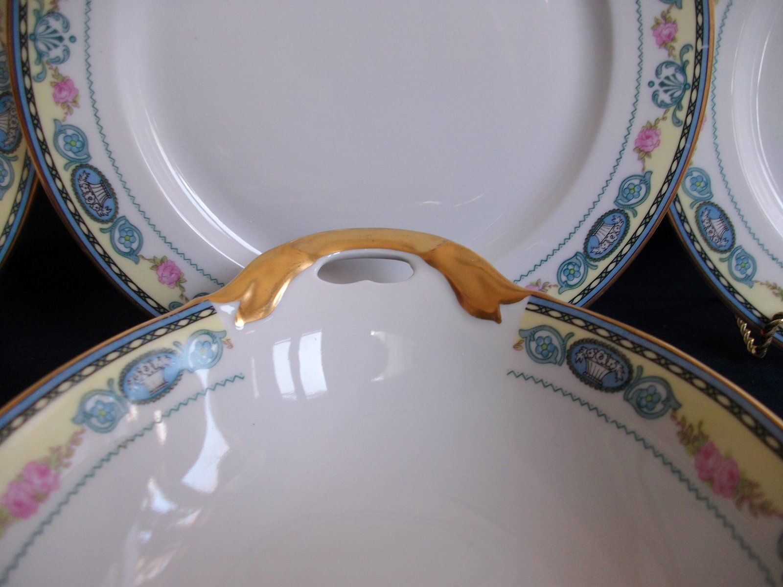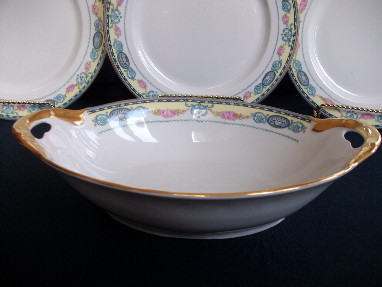 THE SERVING DISH IS IN EXCELLENT CONDITION ESPECIALLY CONSIDERING ITS NEARLY 100 YEAR AGE …. APPEARS UNUSED. THERE ARE NO CRACKS, CHIPS OR CRAZING. THE COLOURS ARE BRIGHT AND SOLID. THE GILT IS GREAT ! (A LITTLE AGE RELATED RUBBING AT THE HANDLES AND RIM.)