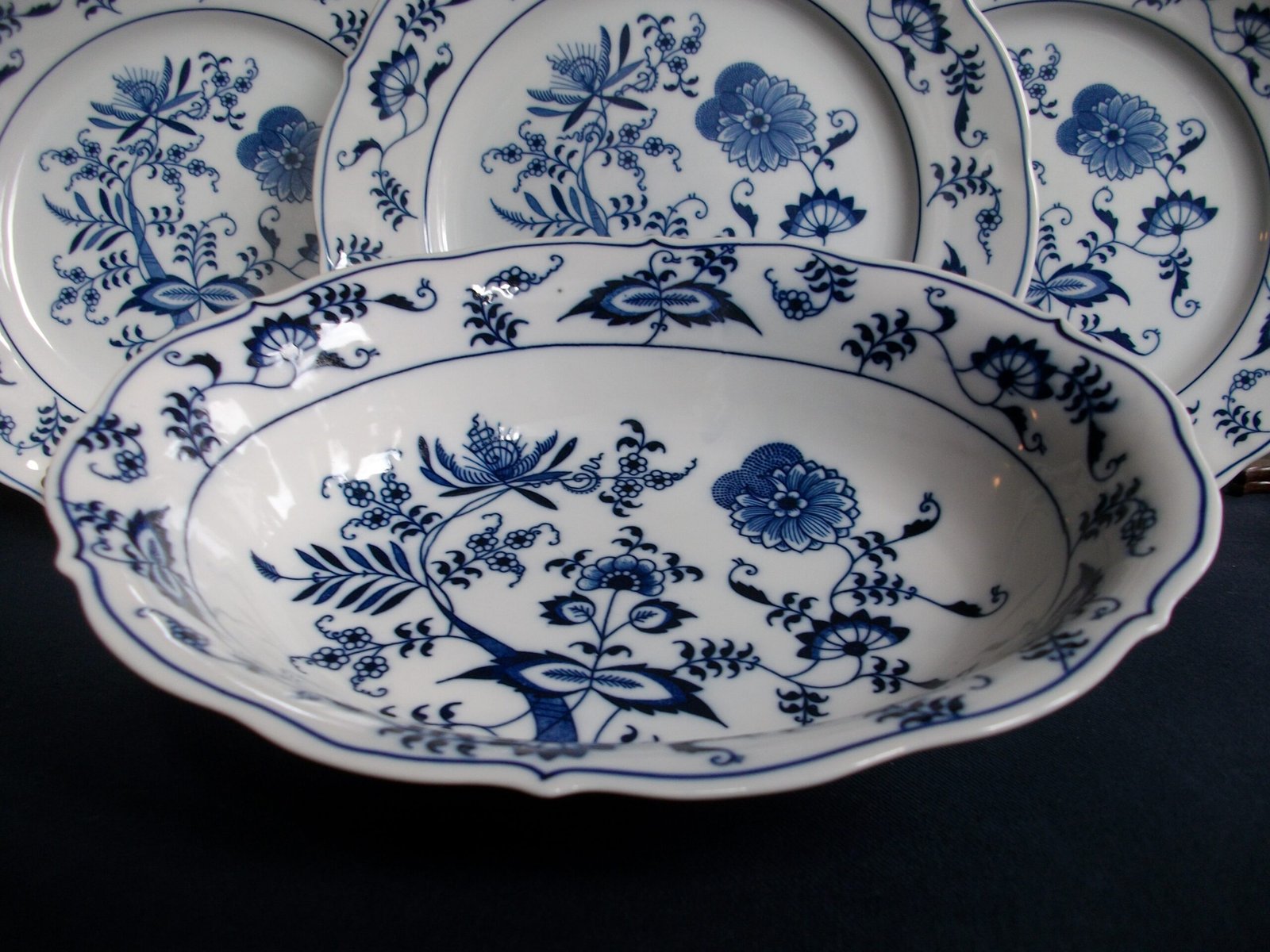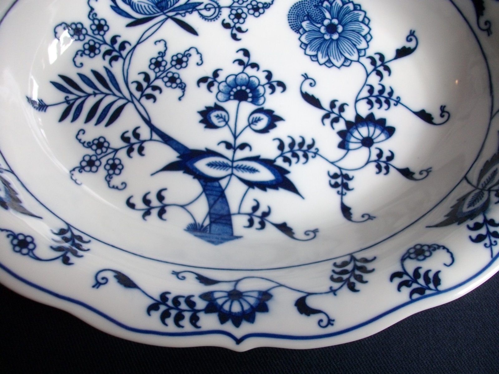 FOR YOUR CONSIDERATION IS A LOVELY OVAL SERVING BOWL FROM BLUE DANUBE* JAPAN, IN THEIR BLUE ONION** PATTERN. THE ORIGINAL BANNER BACK STAMP DATES IT FROM AS EARLY AS 1951 TO 1976.