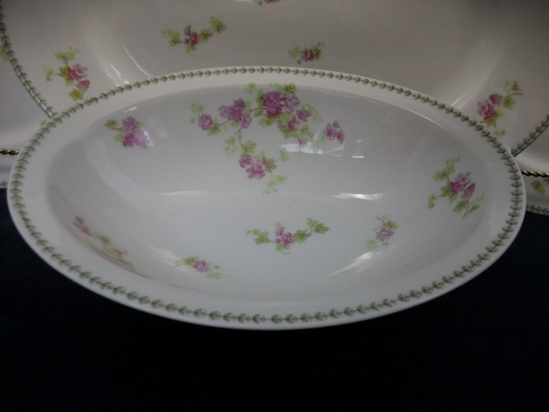 FOR YOUR CONSIDERATION IS A LOVELY ANTIQUE OPEN SERVING BOWL FROM CMC- MAUREIL CHAPEAU & CHARLES IN THEIR PURPLE VIOLETS LAUREL LEAF PATTERN.