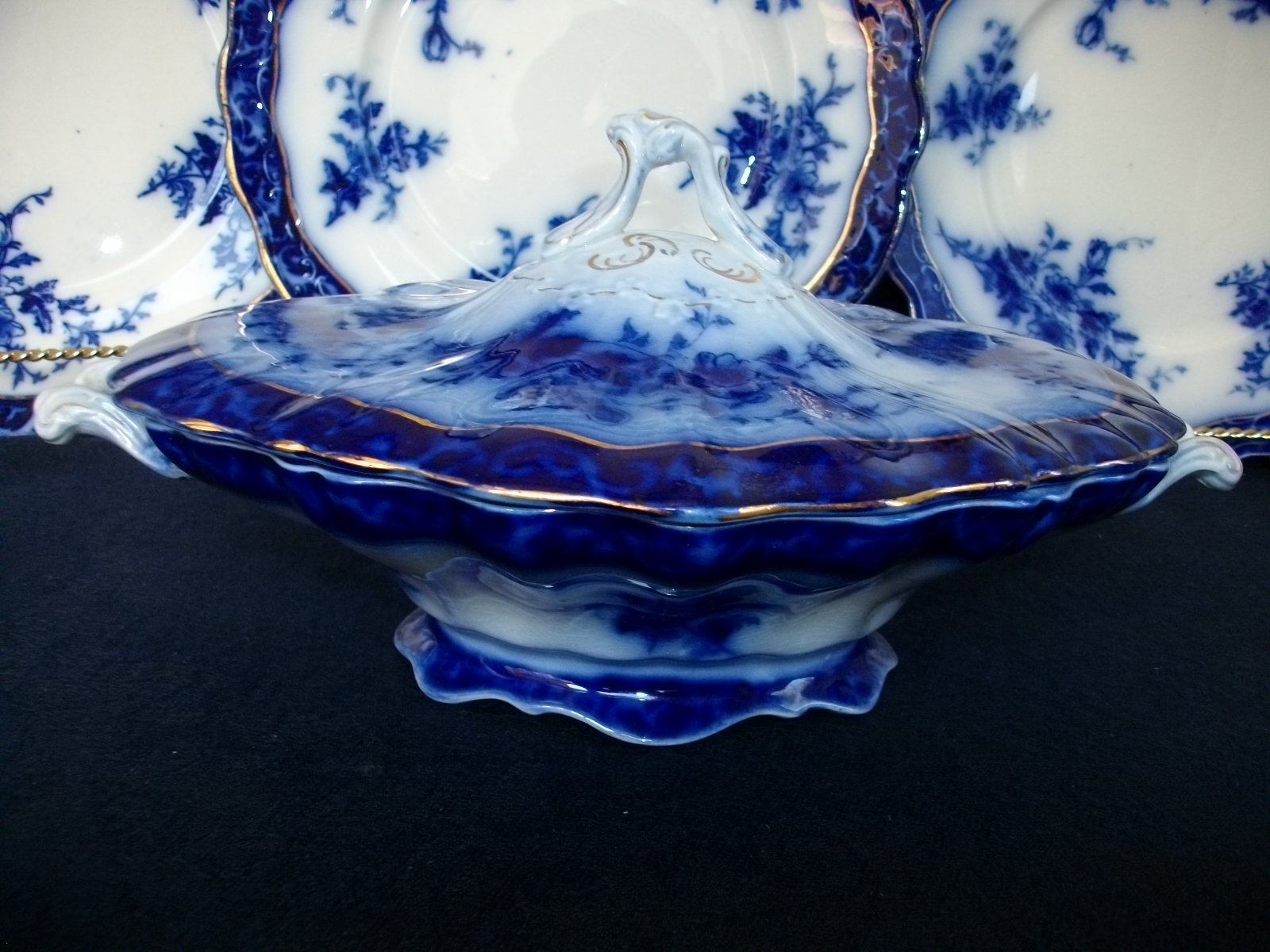 HENRY ALCOCK TOURAINE- FLOW BLUE (c.1898-1910) OVAL COVERED SERVING BOWL #1- EXCELLENT! RARE!