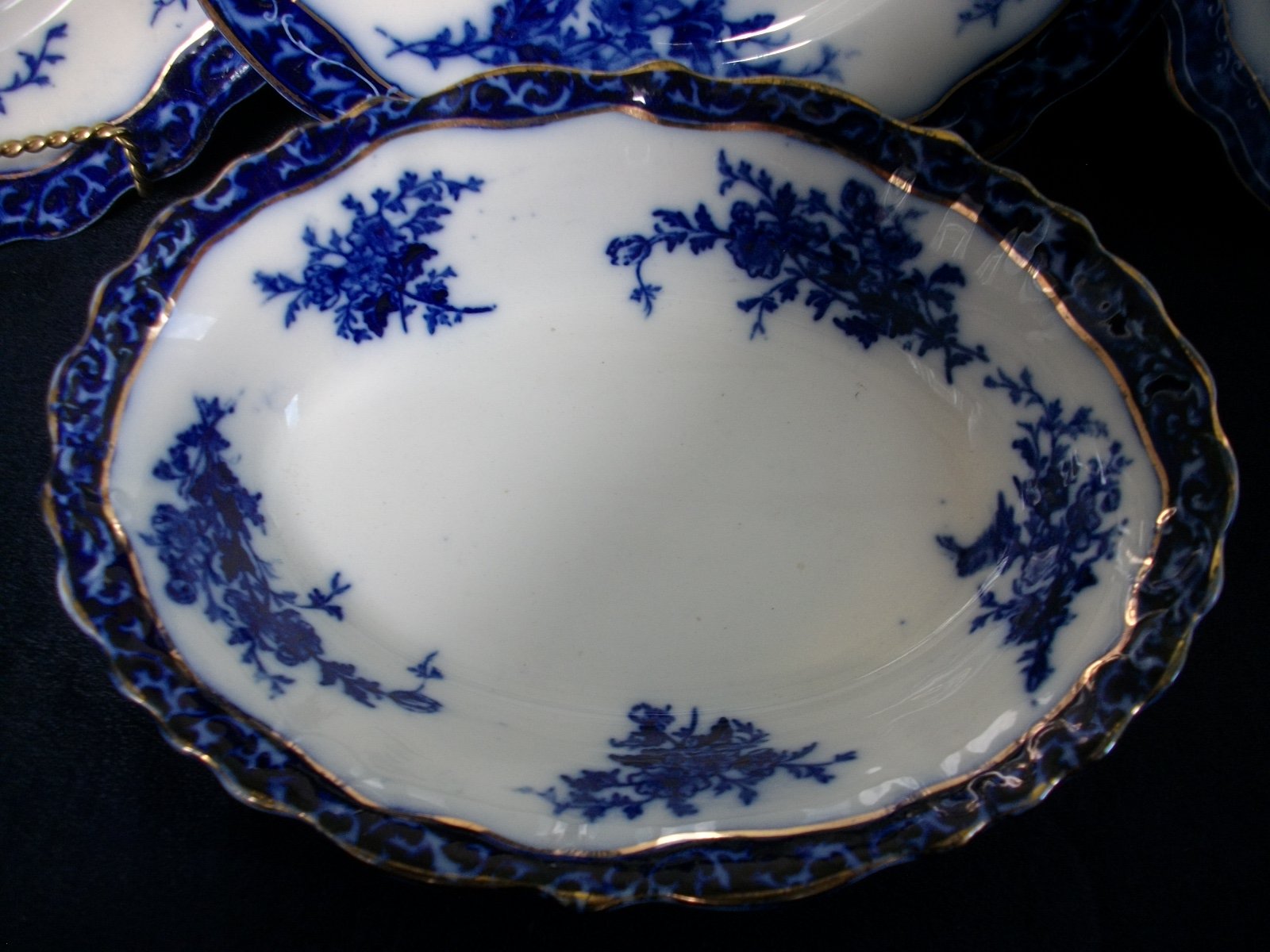 HENRY ALCOCK TOURAINE- FLOW BLUE (c.1898-1910) OVAL SERVING BOWL 8 3/4″ – EXCELLENT! RARE! NO CRAZING!