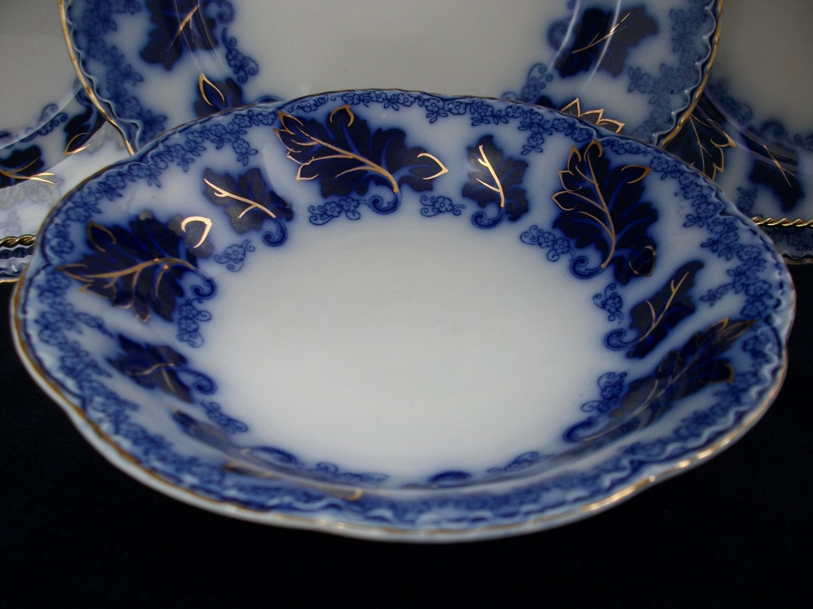 THE COUPE SOUP BOWLS ARE IN EXCELLENT CONDITION CONSIDERING THEIR AGE. THERE ARE NO CRACKS, CHIPS, OR CRAZING; A FEW SCRATCHES ON THE BOWL BOTTOM. THE GILT TRIM AND ACCENTS ARE GREAT !!