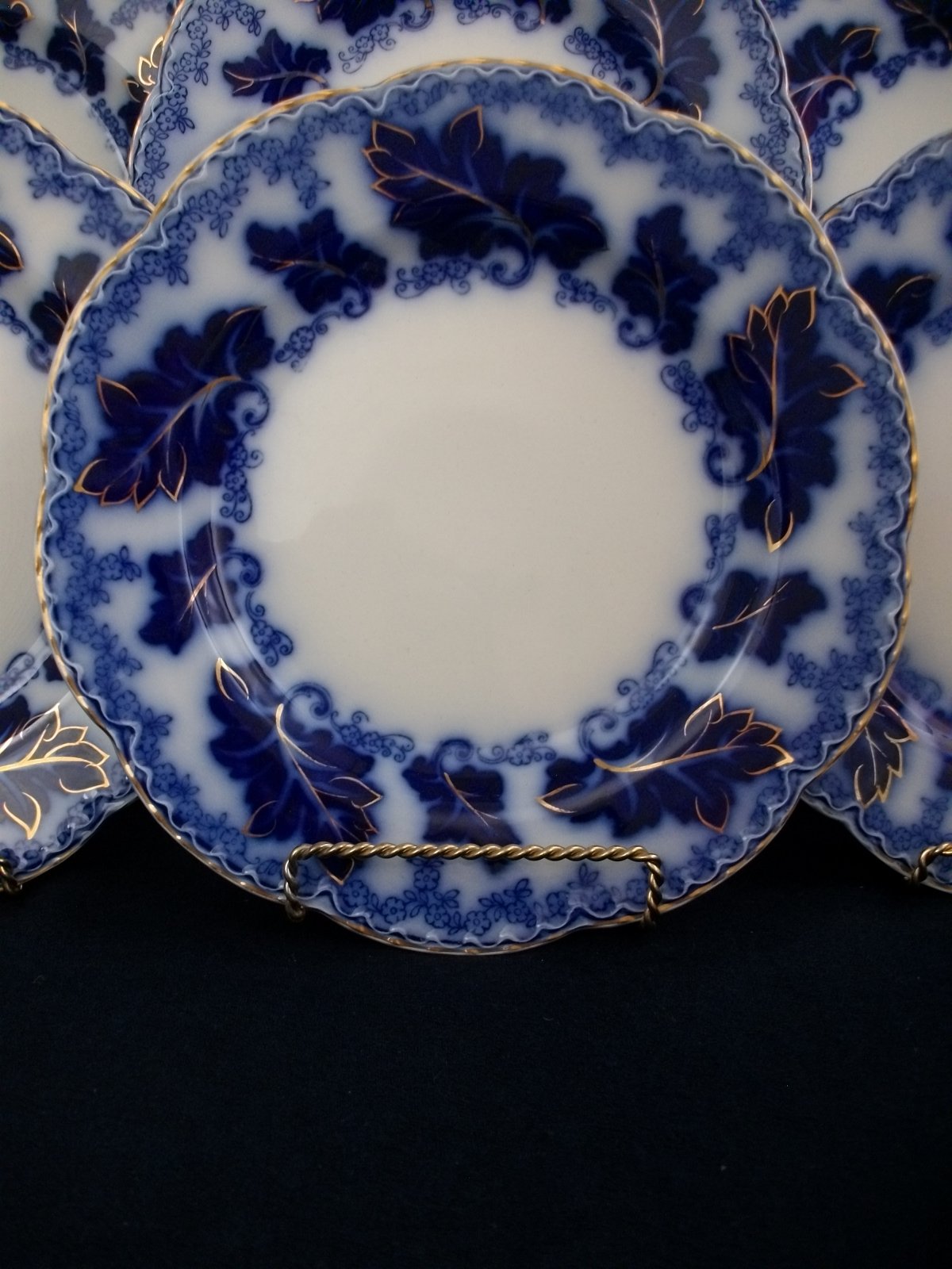 THE DINNER PLATES ARE IN EXCELLENT CONDITION CONSIDERING THEIR AGE. THERE ARE NO CRACKS, CHIPS, OR CRAZING; A FEW SCRATCHES ON THE PLATE FACE. THE GILT TRIM AND ACCENTS ARE GREAT !!
