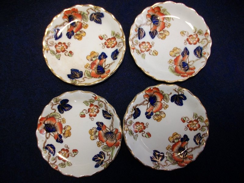 KEELING & CO LTD LOSO WARE- TOKIO- IMARI STYLE (c.1909-37) SET OF 4 BUTTER PATS 3″- RARE!! EXCELLENT!!