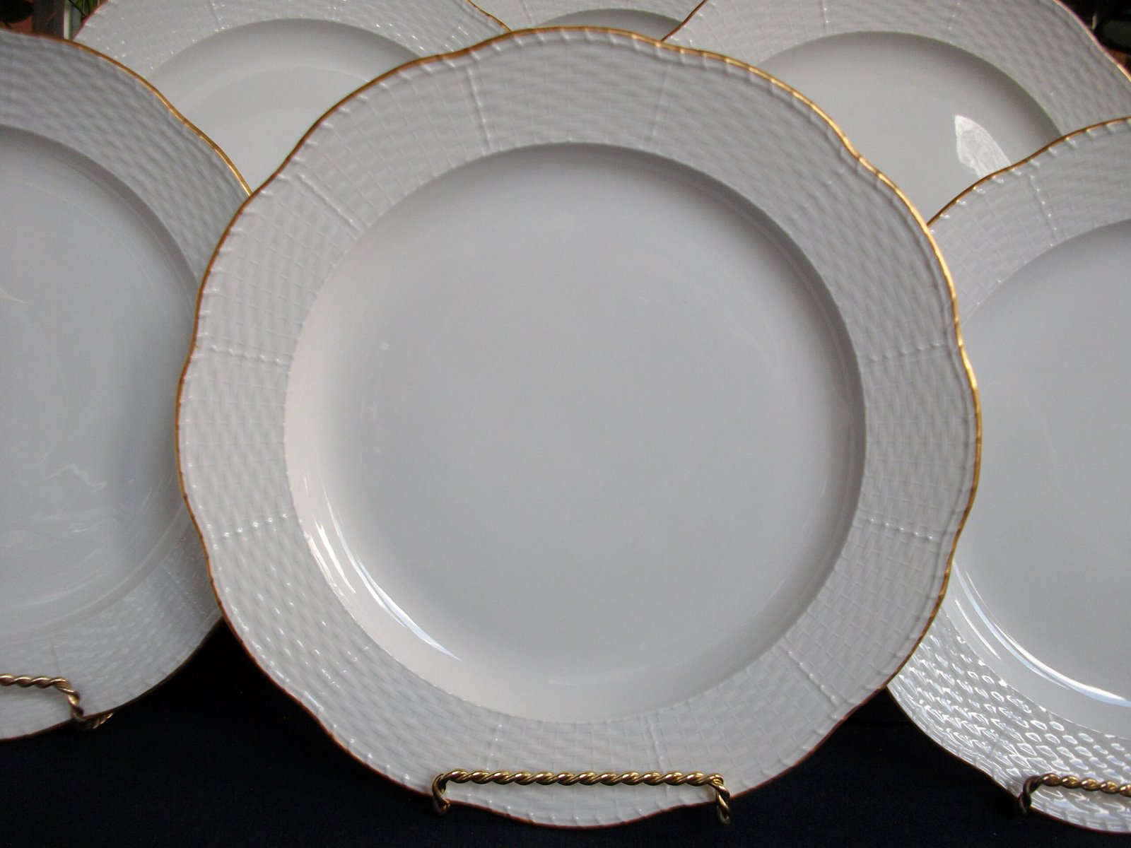 KPM BERLIN NEUOSIER 05 (c.1870+) DINNER PLATES (s)- BASKETWEAVE! RARE! GILT!