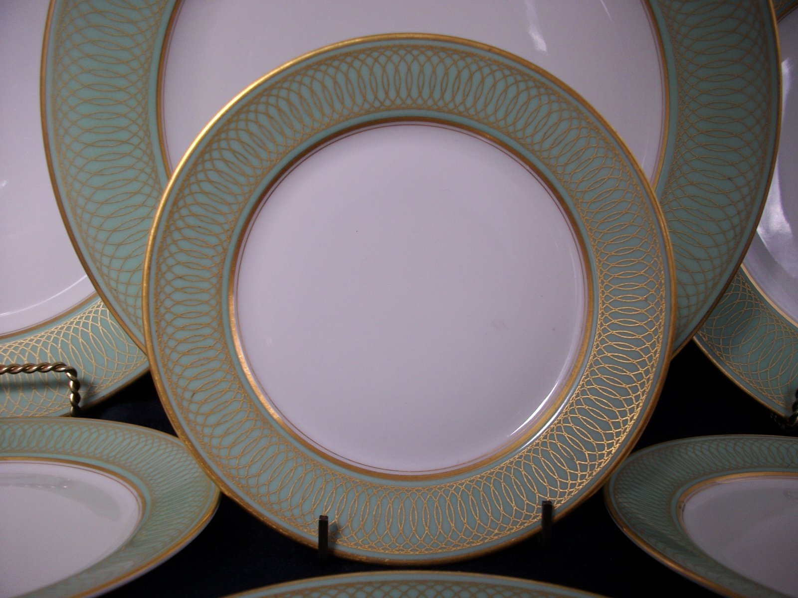 THE LOVELY ART DECO PATTERN FEATURES A GOLD SPIRAL LOOP DESIGN REMINISCENT OF THE SPENCERIAN WRITING SCRIPT; THUS THE PATTERN NAME SPENCERIAN !! ***