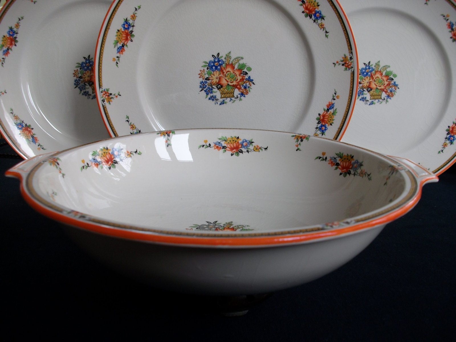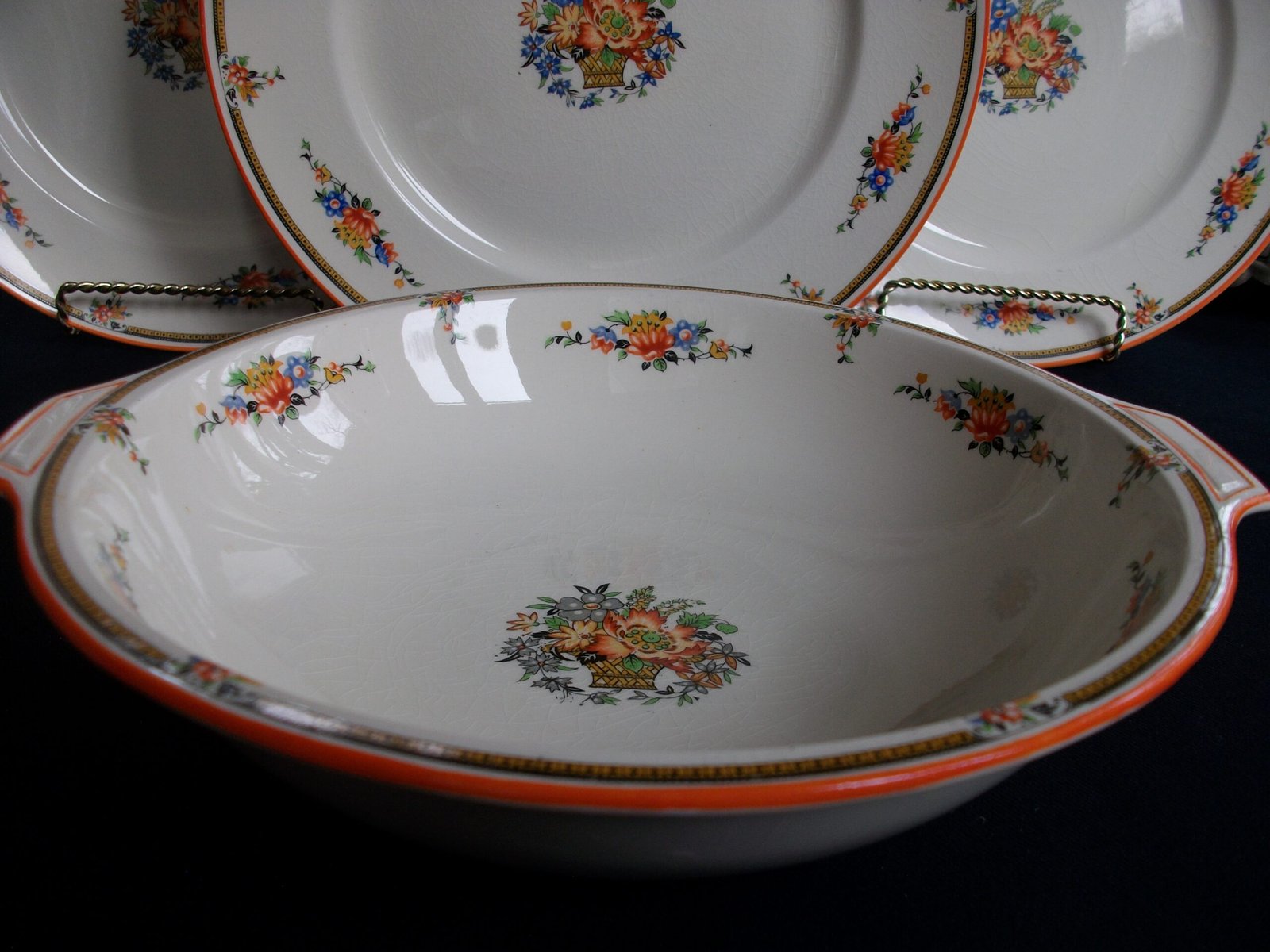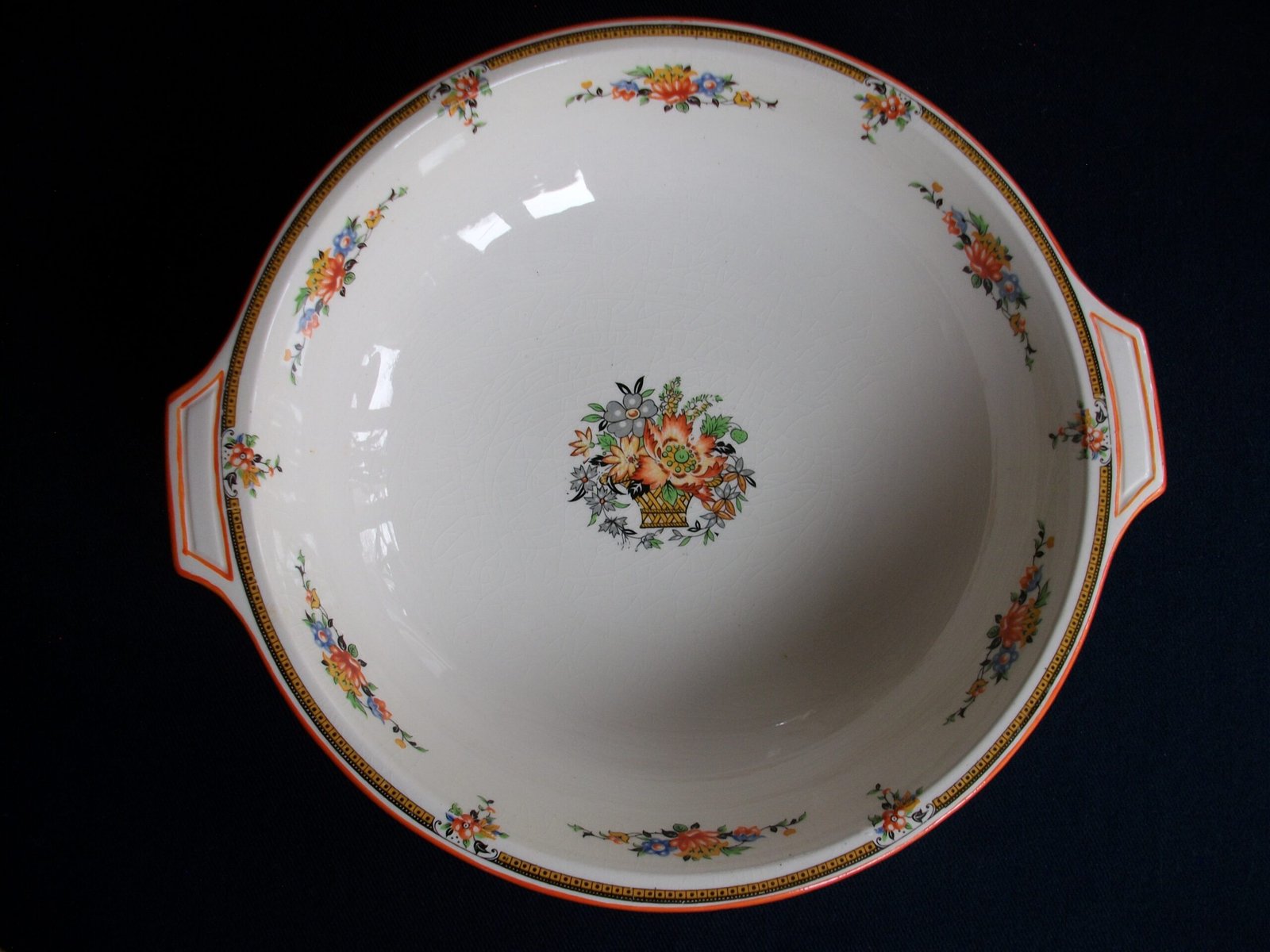 ROYAL WINTON GRIMWADES- DUCHESS #9457- FLORAL BASKET/ORANGE TRIM- c.1930’s- ROUND SERVING BOWL- EXCELLENT!