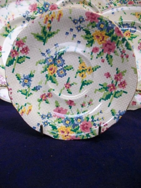 ROYAL WINTON GRIMWADES QUEEN ANNE CHINTZ NEEDLEPOINT (c.1951+)  ATHENA SAUCER  FOR TEA CUP-  EXCELLENT !!  RARE !!