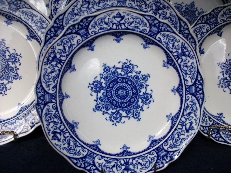 THE PATTERN OF BLUE GRIFFINS AND FRUIT BASKETS IS A WONDERFUL EXAMPLE OF SIMPLE TRADITIONAL VICTORIAN BLUE AND WHITE !!
